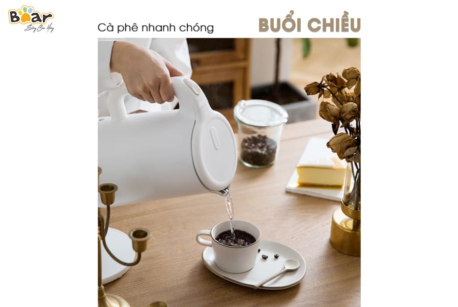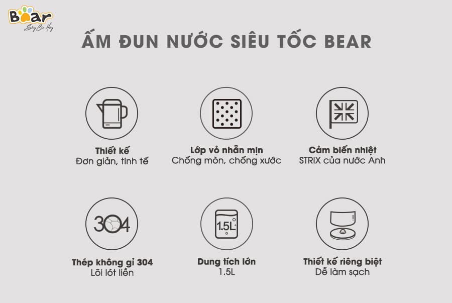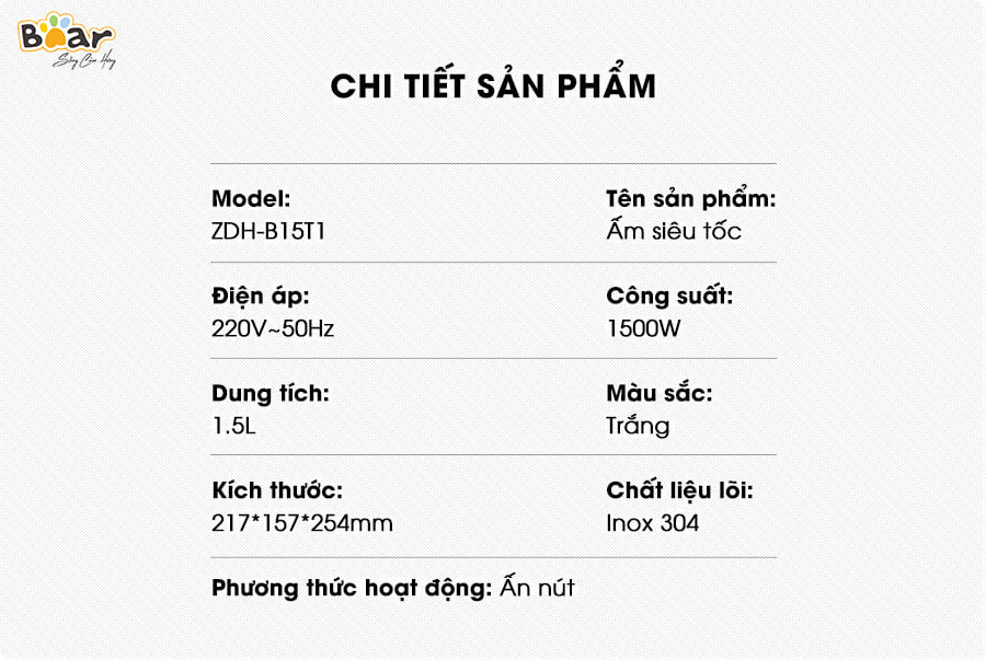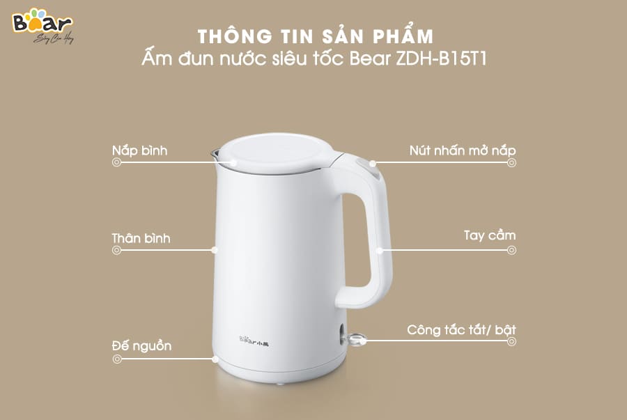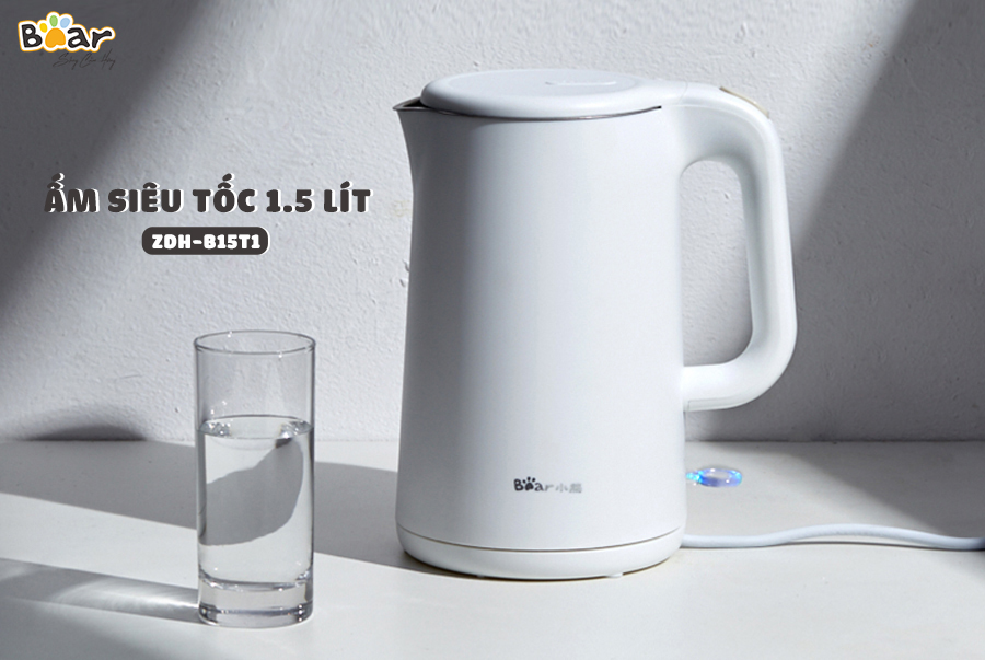 Với thiết kế thời trang, ấm siêu tốc Bear ZDH-B15T1 mang sắc trắng sáng hiện đại không chỉ thích hợp đặt trong phòng bếp mà còn có thể trang trí ở phòng khách...