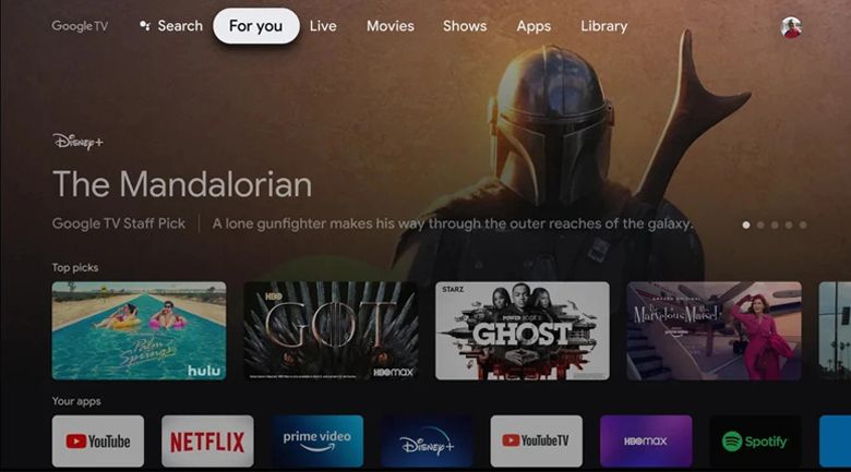 Thiết kế giao diện của Google TV của hệ điều hành Android 10 rất thân thiện với người dùng, dễ sử dụng. Với kho ứng dụng Google Play hơn 5000 ứng dụng giải trí hỗ trợ cả tiếng Việt và tiếng Anh như: Clip TV, Youtube, FPT Play, Netflix, Galaxy Play, VieON, VTV Cab On, NCT, Zing, trình duyệt web, Pops Kid,... Giúp các thành viên trong gia đình bạn có thể có trải nghiệm giải trí tuyệt vời trên chiếc tivi này.