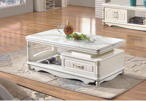 Nếu bạn là người yêu thích phong cách tân cổ điển sang trọng nhưng vẫn muốn sở hữu một thiết kế bàn sofa thông minh có ngăn kéo thì tham khảo ngay mẫu thiết kế trên đây. Bàn trà tân cổ điển mặt đá tự nhiên thiết kế màu trắng ấn tượng chắc chắn sẽ giúp không gian phòng khách thêm phần đẳng cấp.