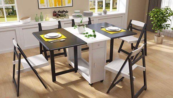 Một loại bàn ăn này phù hợp với những phòng bếp có diện tích hẹp. Bạn có thể setup cố định bàn ăn hoặc gấp gọn và cất đi, chỉ bỏ bàn ăn ra khi có nhu cầu sử dụng. Tuy nhiên do thiết kế tập trung vào công nghệ nên không quá chú trọng vào đường nét. Các loại bàn này thường đơn giản, màu sắc trang nhã dễ dàng phù hợp với không gian sống hiện đại.