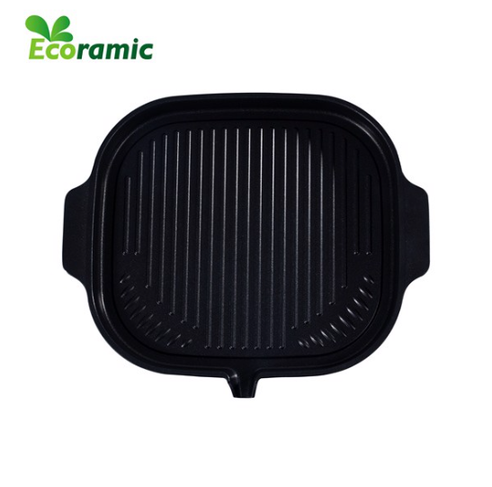 - Chảo nướng BBQ Ecoramic không kén bếp, chảo dùng được cả bếp từ vô cùng tiện lợi.
