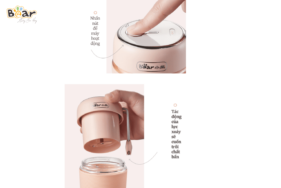 Với thiết kế đơn giản, cốc xay cầm tay Bear cũng dễ dàng sử dụng chỉ với 1 nút ấn bấm xay.