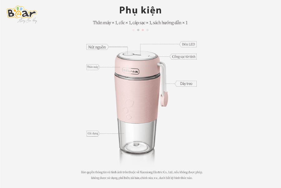Cốc xay mini cầm tay Bear LLJ-B03C1 hay còn được gọi là máy xay cầm tay hoặc máy xay mini. Cốc xay cầm tay có thiết kế tương tự một chiếc cốc rất nhỏ gọn, khác hẳn với các dòng máy xay gia đình hiện có trên thị trường.