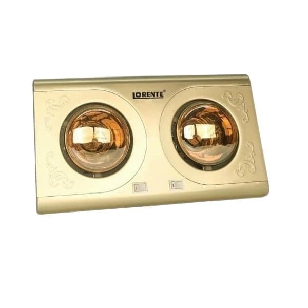 Đèn sưởi nhà tắm Lorente là sản phẩm sưởi ấm không thể thiếu trong mùa đông, thiết kế sang trọng hoa văn vàng kim hòa quyện với đèn sưởi 2 bóng màu vàng tạo cho không gian phòng tắm sang trọng và đạt chuẩn phong cách Châu Âu.