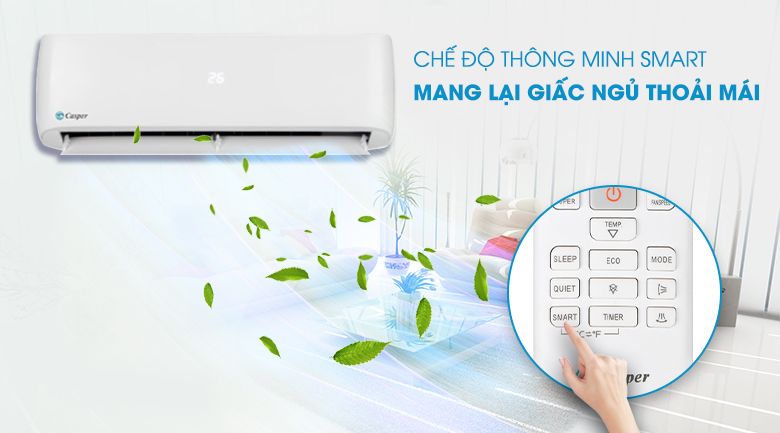 Khi máy đang hoạt động ở chế độ làm mát Cool, kích hoạt nút Smart trên remote thì máy lạnh sẽ tự động điều chỉnh nhiệt độ trên 26 độ C, mang lại cảm giác dễ chịu khi ngủ.