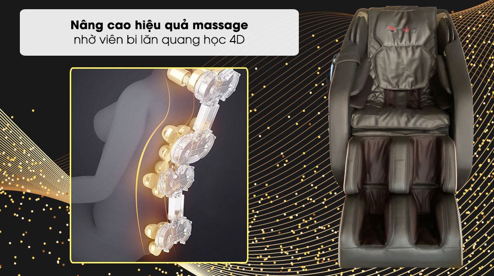 - Mang lại trải nghiệm massage hiệu quá nhờ trục ghế chữ L và chữ S kết hợp cùng con lăn 4D bọc silicon mềm mại.