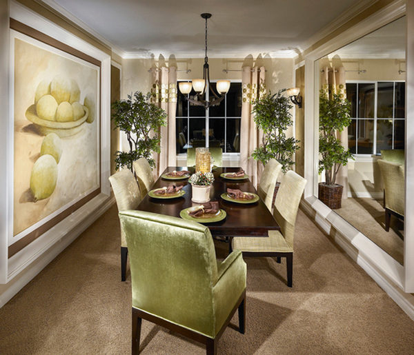 Bạn có thể thấy mọi thường treo gương trang trí trong phòng ngủ, phòng khách, vậy phòng ăn thì sao? Bạn đã từng thấy các ngôi nhà trông thực sự lung linh hơn khi lắp gương ở khu vực ăn uống hay không.