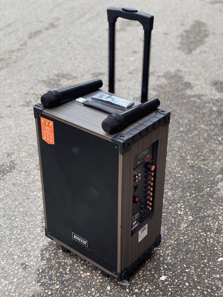 Loa kéo di động BNIB T12 là mẫu dùng 1BASS+ 1 loa treble, công suất đỉnh 300W, loa có giá rất mềm nhưng âm thanh nghe cũng khá, loa có kèm theo 02 microphone không dây và bạn có thể ca hát vui vẻ trong lúc rảnh rỗi hoặc hát chung với gia đình và bạn bè.
