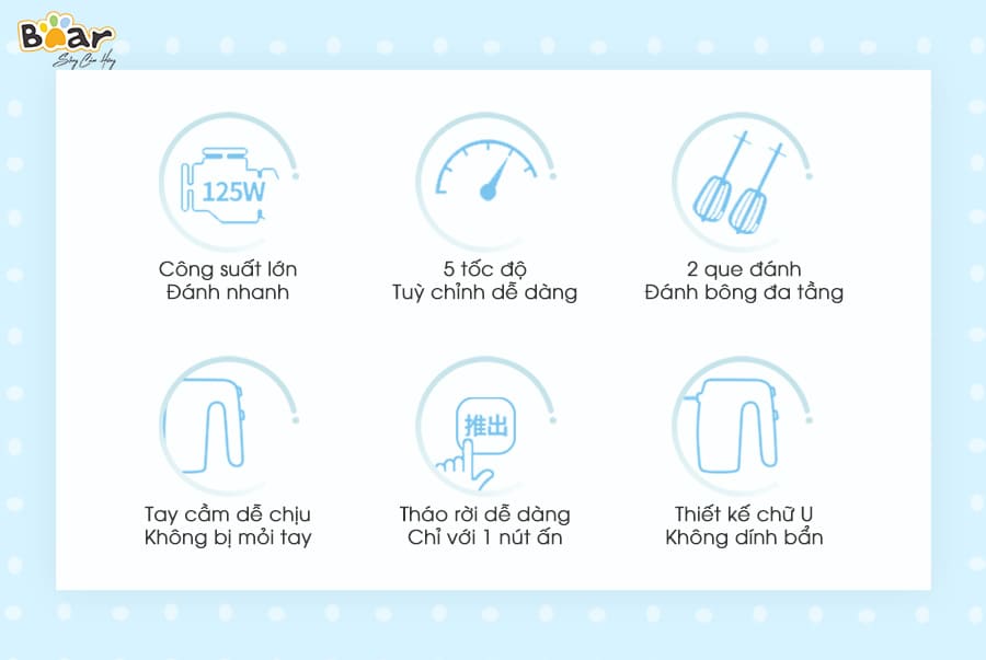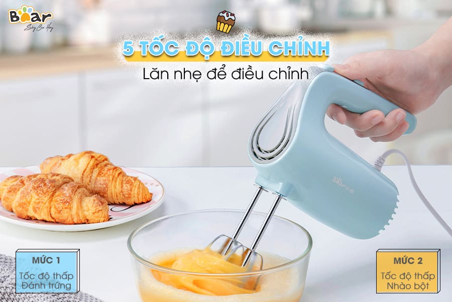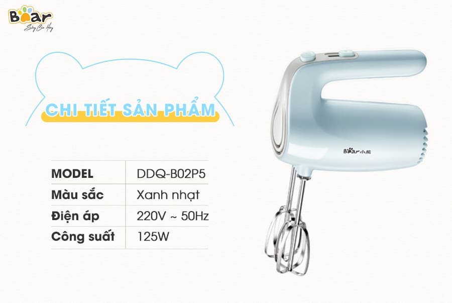 Nếu bạn đang tìm kiếm một em máy đánh trứng nhỏ gọn thì không thể bỏ qua phiên bản DDQ-B02P5 với 5 tốc độ đánh mạnh mẽ chính hãng Bear nhé.