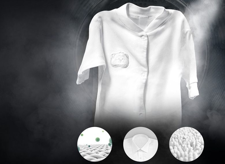 Công nghệ hơi nước Steam Care được trang bị trên máy giặt giúp loại bỏ các tác nhân gây dị ứng như nấm mốc, các vi khuẩn gây hại có trên quần áo, bảo đảm an toàn cho làn da, tránh bị dị ứng, bảo vệ sức khỏe cho cả gia đình. Đồng thời những vết nhăn trên quần áo cũng được cải thiện rõ rệt. Đối với những gia đình có trẻ nhỏ thì đây là một công nghệ vô cùng hữu ích và cần thiết.