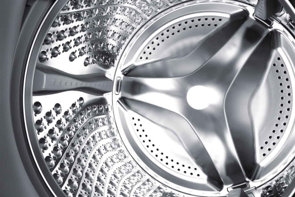- Lồng giặt được làm bằng thép không gỉ có độ sáng cao và chống hoen gỉ theo thời gian, nhờ đó đảm bảo hiệu quả giặt sạch quần áo mỗi khi giặt. Không những vậy, bề mặt lồng giặt còn được thiết kế hình kim cương, góp phần bảo vệ quần áo đáng kể trong suốt quá trình giặt.
