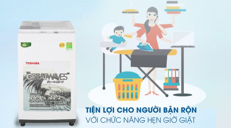 Đây là chiếc máy giặt Toshiba cửa trên, lồng đứng với khối lượng giặt 7 kg sẽ phù hợp với nhu cầu giặt giũ cho những gia đình có 2 - 3 thành viên.