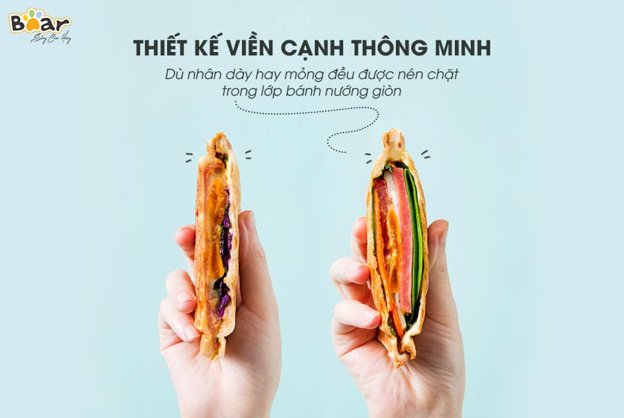 Các vỉ nướng đều được thiết kế tháo rời để dễ dàng thay thế tùy theo nhu cầu sử dụng. Để các loại bánh sandwich kẹp nhân được chắc và kẹp nhiều nhân hơn, vỉ nướng của máy kẹp nướng bánh Bear đã đặc biệt thiết kế viền cạnh thông minh giúp ép chặt lớp bánh để giữ được lớp nhân không bị rơi khi ăn.