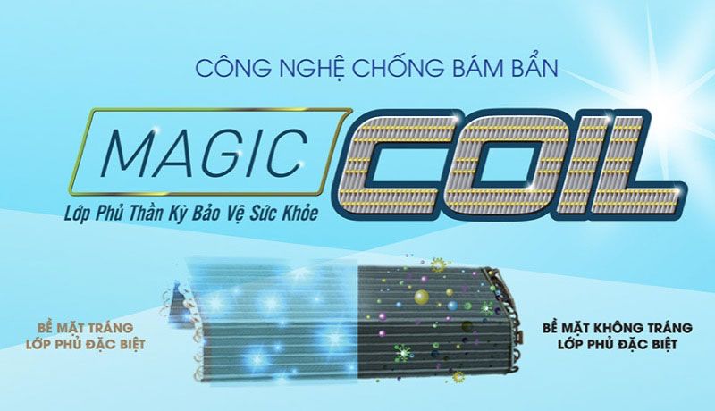 Ở công nghệ Magic Coil được tích hợp ở cả dàn lạnh lẫn dàn nóng sẽ giúp hiệu quả làm lạnh được nâng cao, máy lạnh vận hành bền bỉ với thời gian, tiết kiệm điện. Hơn nữa ở công nghệ này, dàn lạnh được phủ một lớp Aqua đặc biệt, chống bám bụi bẩn hiệu quả, đảm bảo cho máy hoạt động tối ưu với luồng khí mát trong lành. Từ đó sẽ tiết kiệm được chi phí bảo trì, vệ sinh sản phẩm cho gia đình bạn.