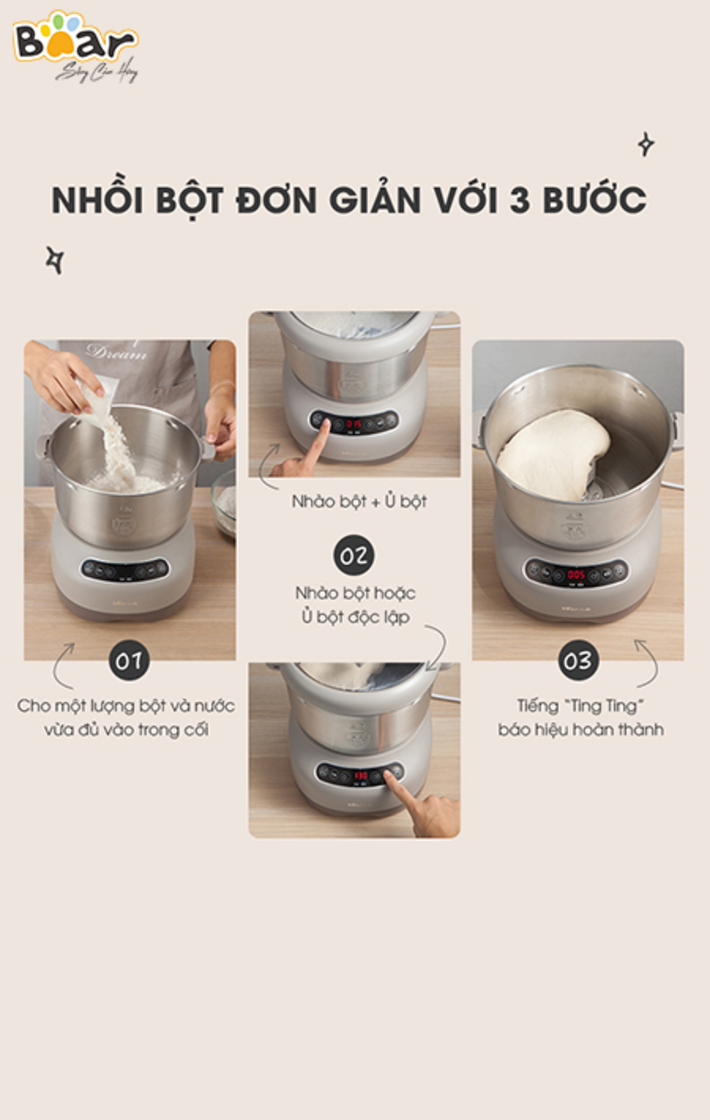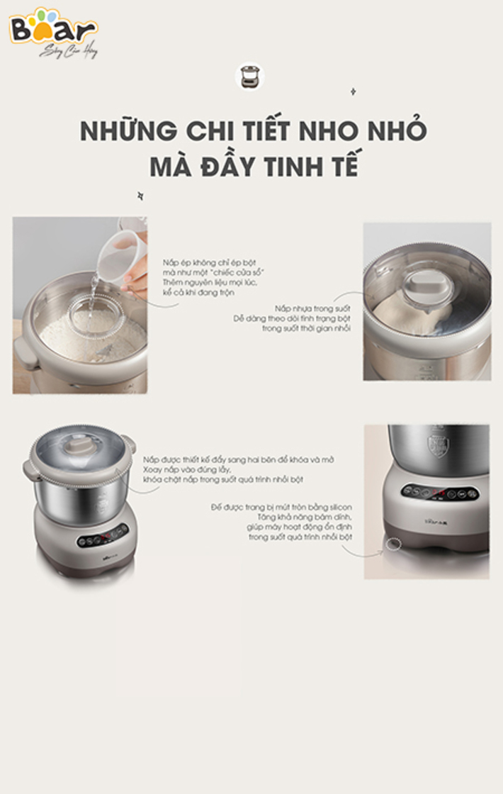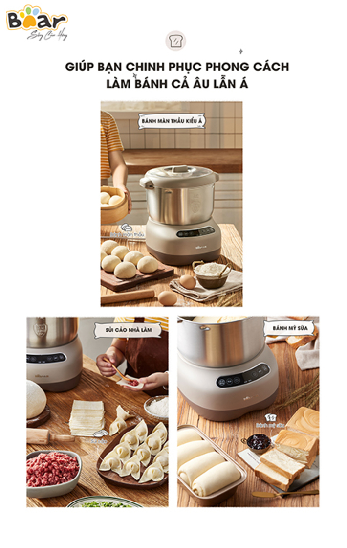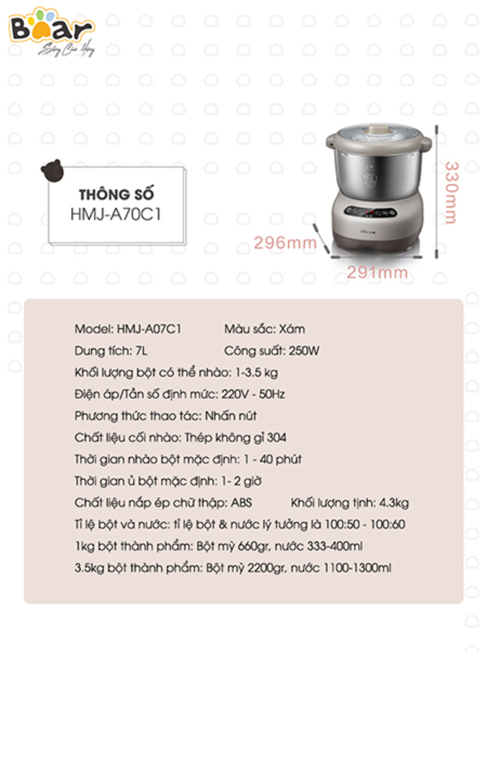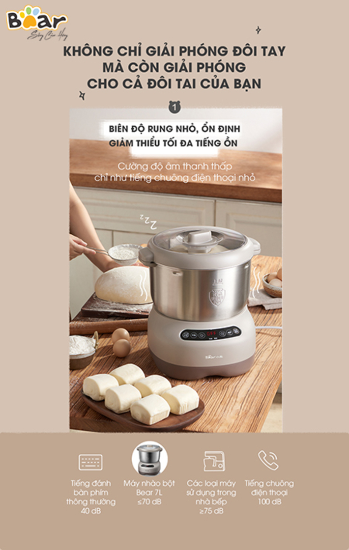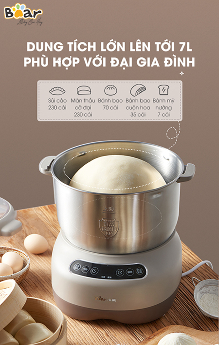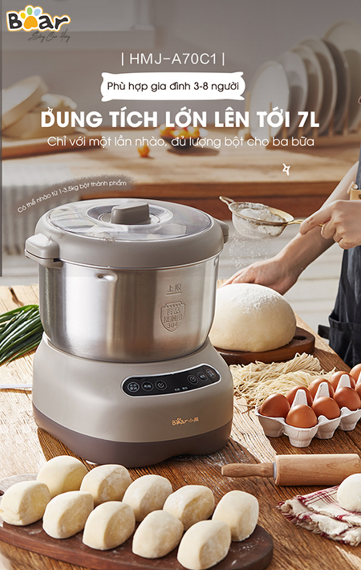Máy Trộn Bột 7L Bear HMJ-A70C1 với dung tích 7L, động cơ mạnh mẽ giúp bạn nhào bột làm bánh nhanh chóng và thật đơn giản. Thiết kế thời trang nhỏ gọn phù hợp với mọi căn bếp, cùng Bear Việt Nam trải nghiệm ngay HMJ-A70C17L nhé.