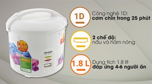 Nồi cơm nắp gài Sharp KS-18TJV 1.8 lít thương hiệu Nhật Bản nổi tiếng, chất lượng cao, giá cả phải chăng phù hợp túi tiền đại đa số người dùng.