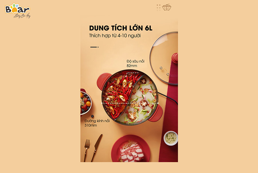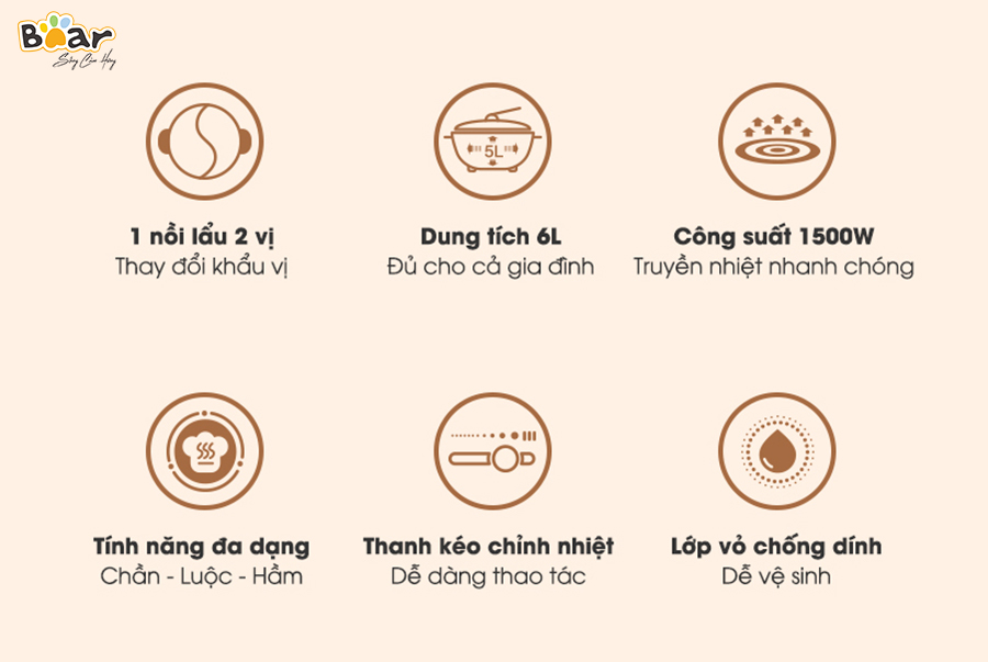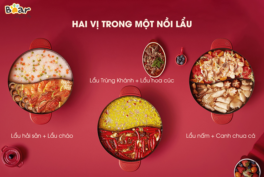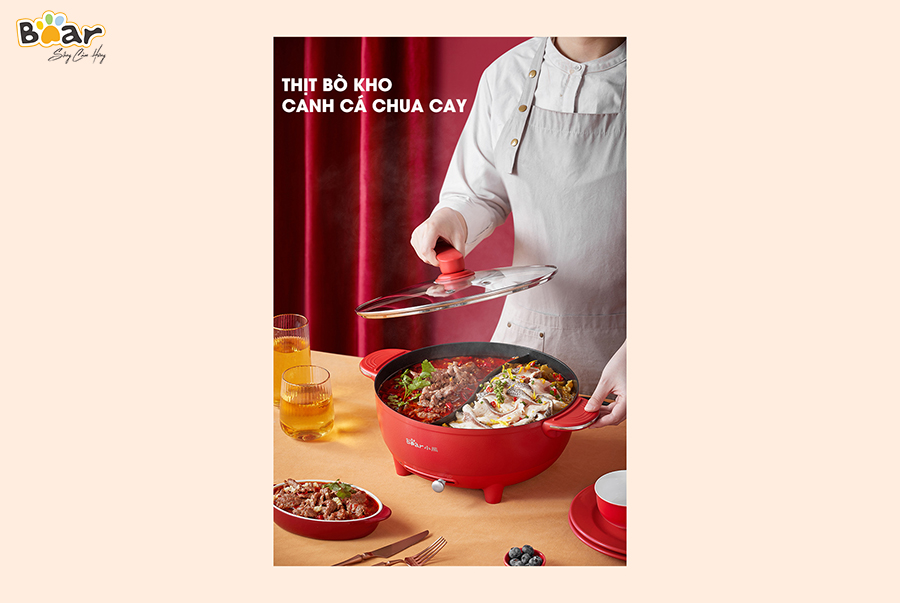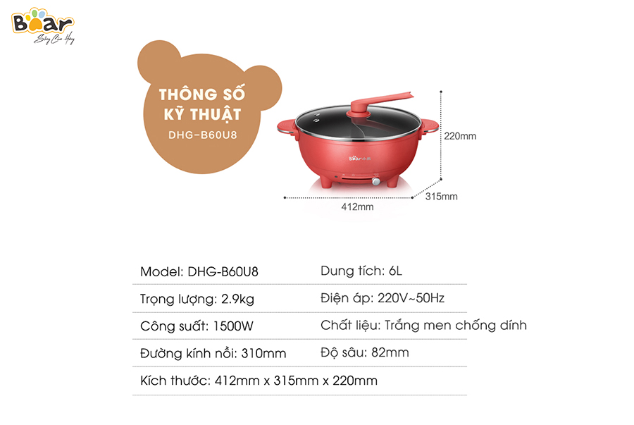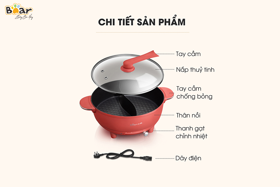 | Tên sản phẩm | Nồi Lẩu Uyên Ương Bear SUBE 006 |