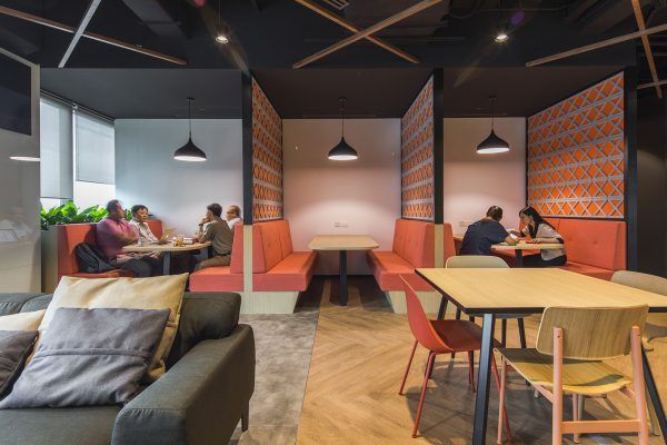 Sử dụng màu sắc để làm nổi bật không gian làm việc, truyền cảm hứng cho nhân viên cũng là cách nhận diện thương hiệu được áp dụng trong thiết kế văn phòng. Tông màu cam ấm áp, thân thiện và được biệt đến là tông màu truyền năng lượng mới, năng lượng tích cực trong công việc cho nhân viên.