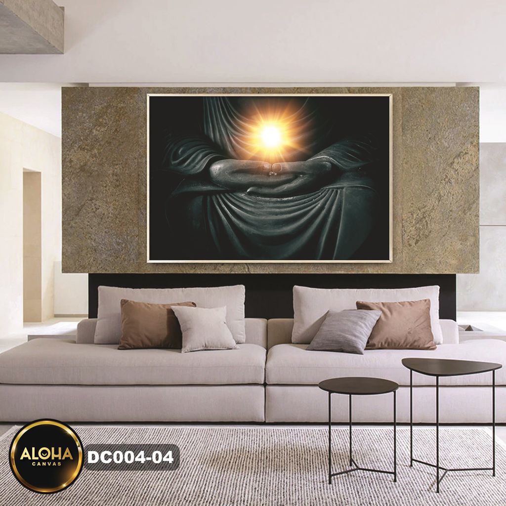 - Tranh bên em là tranh in trên vải canvas mà các họa sĩ chuyên sử dụng trong tác phẩm hội họa đó ạ, in xong có phủ 3 lớp nano bóng dầu phía trên nữa, chống bay màu cũng như thấm nước, ẩm mốc, nhà mình về cứ vệ sinh lau chùi thoải mái bác nhé