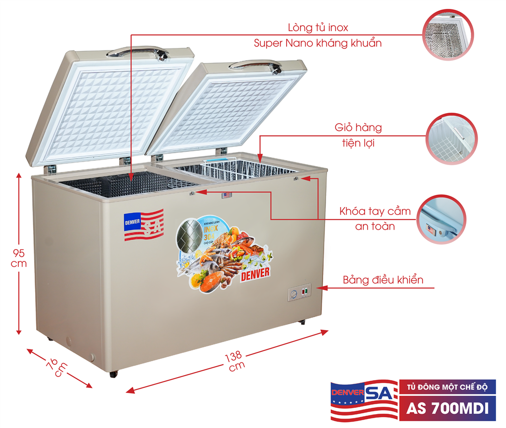 Tủ đông Denver AS700MDI là dòng sản phẩm tủ đông inverter được nhập khẩu nguyên chiếc. Với những tính năng bảo quản ưu việt cùng chất lượng hàng đầu trong ngành điện lạnh, đây là sản phẩm đang được nhiều khách hàng quan tâm, sử dụng.