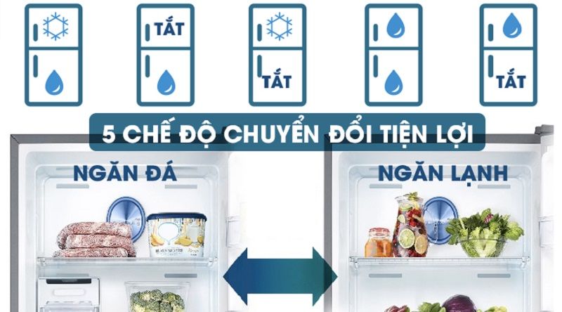 + Chế độ 2 ngăn mát : Bạn sẽ biến ngăn đá bên trên thành ngăn mát nếu như bạn đang cần thêm không gian để bảo quản thực phẩm.