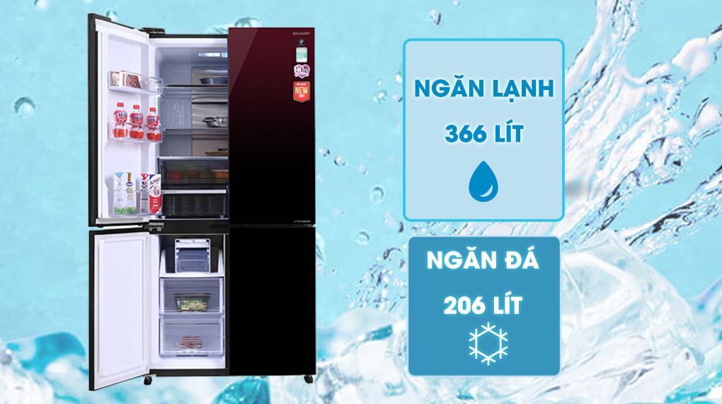 Sản phẩm có ngăn lạnh 206 lít và ngăn mát 366 lít, với nhiều ngăn chứa khác nhau, để được nhiều loại rau củ và phù hợp sử dụng cho gia đình trên 5 người.