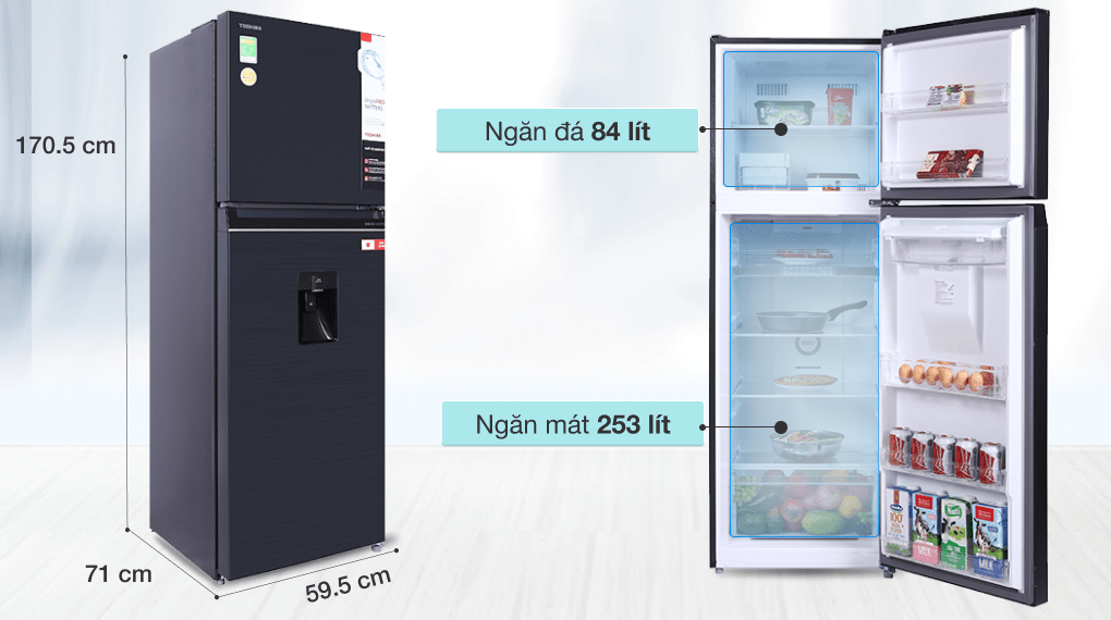 Mẫu tủ lạnh Toshiba ngăn đá trên này có dung tích đạt đến 337 lít, trong đó ngăn đá 84 lít còn ngăn lạnh 253 lít, là lựa chọn phù hợp cho những gia đình từ 3 - 4 người hoặc những gia đình ít thành viên hơn nhưng lại có nhu cầu lưu trữ thực phẩm nhiều.