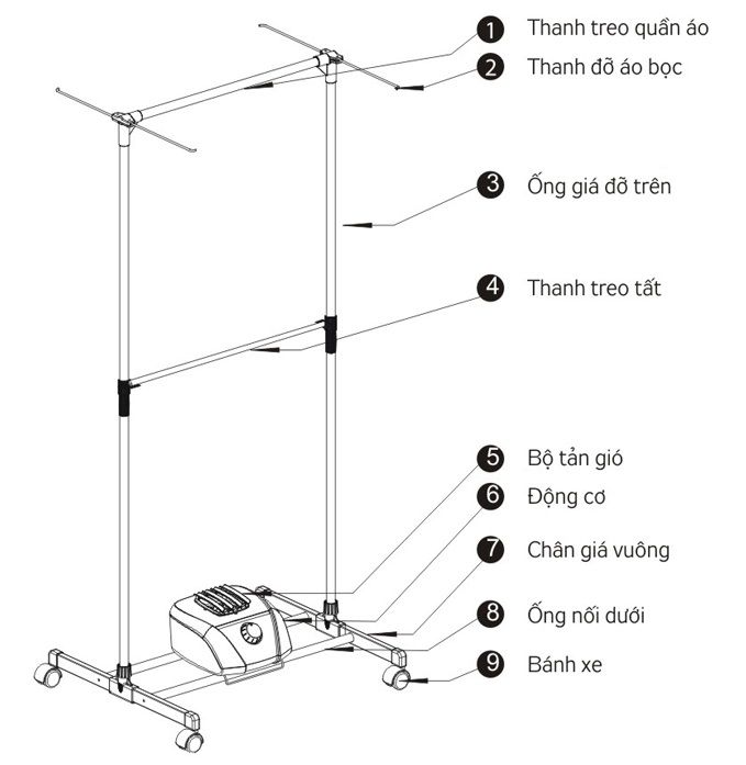 - Khối lượng treo phơi: 20 kg